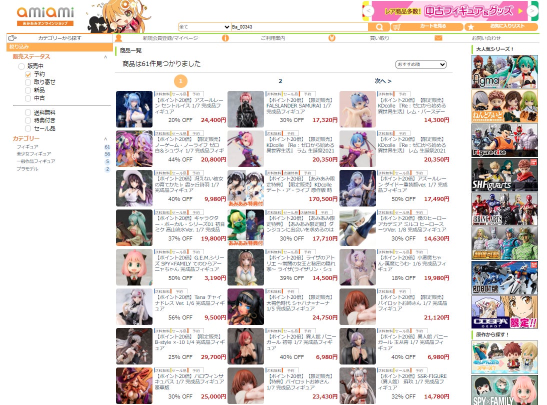 ホビー通販大手「あみあみ」のオンラインショップで、『あみあみ ポイント20倍キャンペーン』を実施。