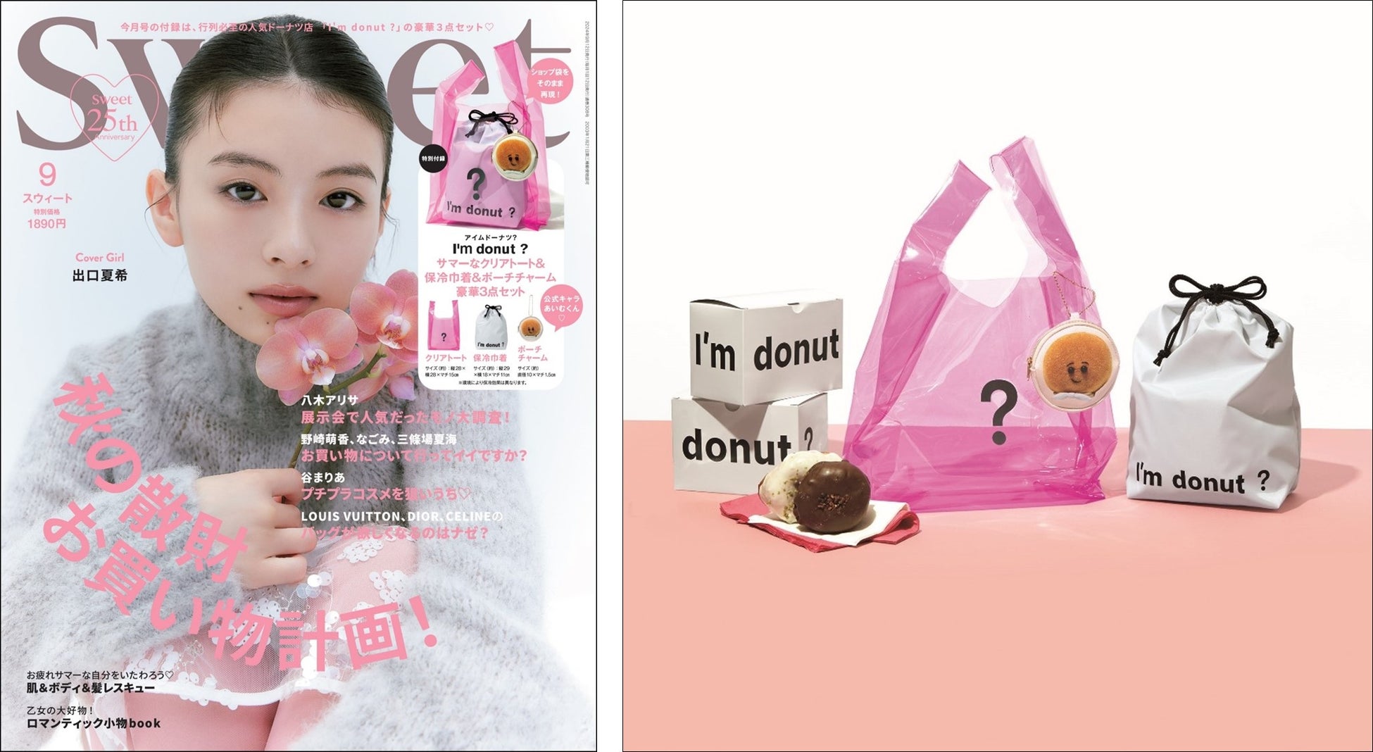 ファッション雑誌販売部数トップシェア(※)の株式会社宝島社が、8月9日(金)に発売する『sweet(スウィート)』9月号の特別付録は、行列必至の人気ドーナツ店「I’m donut ?(アイムドーナツ?)」と初のコラボとなるクリアトート、保冷巾着、チャームポーチの3点セットです。