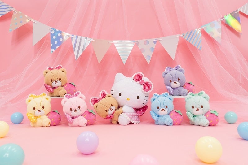 10月には、ふわふわな見た目と触りごこちでタイニーチャムの可愛さを表現した「超BIGぬいぐるみ」をご用意しました。「大きな毛布」はこれからの寒い季節にぴったりのアイテムで、カラフルな総柄のデザインがポイント。「マスコット」は推し活にも連れていけるサイズ感で、“ぬい撮り”を楽しむのもおすすめです。11月には、ハローキティと仲良くハグをする「ペアぬいぐるみ」、いちごをぎゅっとする姿がキュートなぬいぐるみをラインナップ。12月に登場する「ぬいぐるみシュシュ」はいちごのチャームをあしらったデザインが特徴で、推し活で腕やペンライトに付けてお楽しみいただくことも。タイニーチャムのきょうだいたちが勢ぞろいしたボリューム感たっぷりの「BIGぬいぐるみ」も登場します。