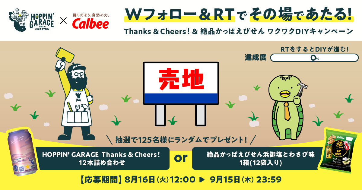「HOPPIN' GARAGE Thanks & Cheers!」発売記念 カルビー社「絶品かっぱえびせん」との合同Twitterキャンペーンを実施 8/30には生配信オンライン乾杯イベントを開催