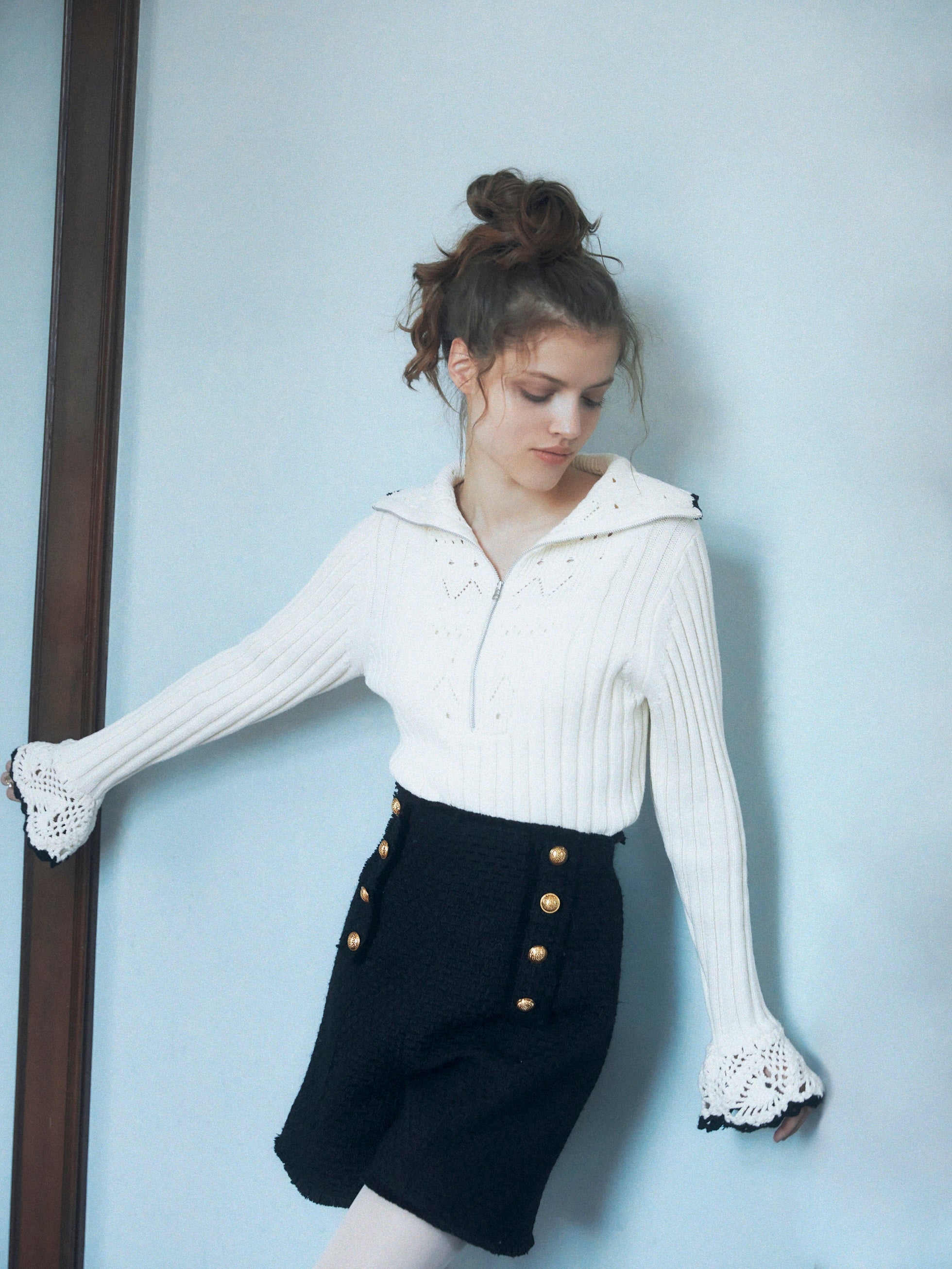トレンドのエッセンスも入れ込んだ甘さの香るディテールに