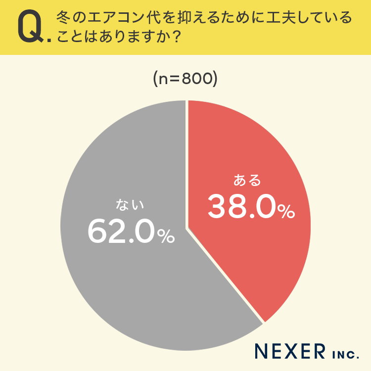 さらに38%の方が、冬のエアコン代を抑えるために工夫していることがあると回答しました。