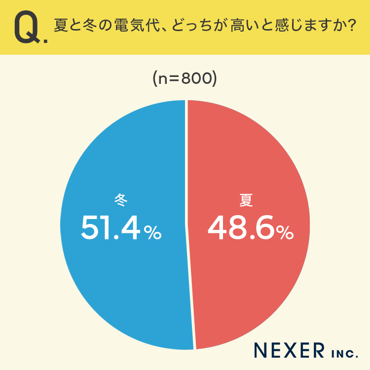 ■51.4%が、夏と冬の電気代は「冬の方が高いと感じる」と回答