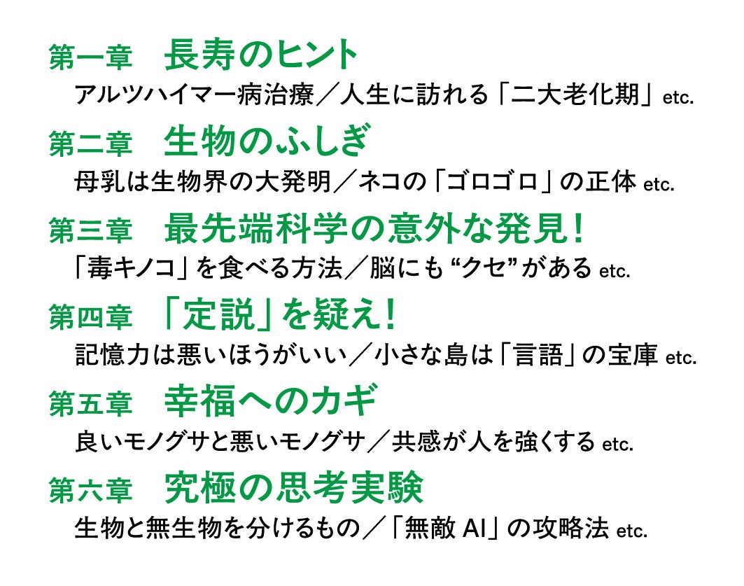 「老化は徐々に進むわけではない?」「なぜ母乳は生物界の大発明なのか?」「記憶力は悪いほうがいい?」