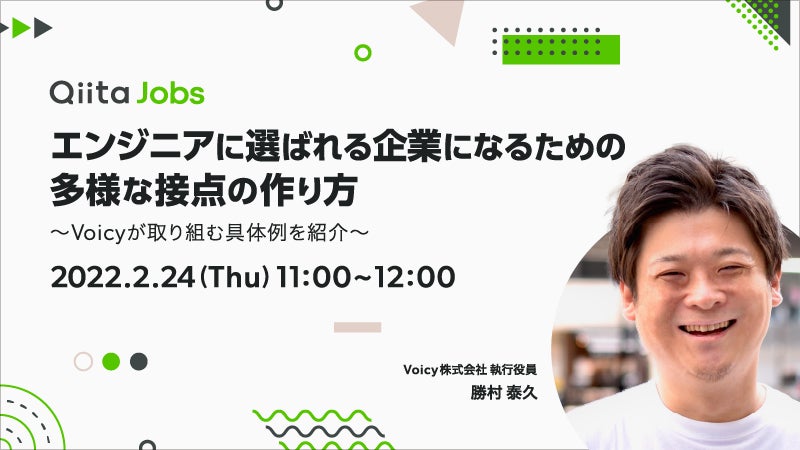 オンラインセミナー「エンジニアに選ばれる企業になるための多様な接点の作り方〜Voicyが取り組む具体例を紹介〜」を、エンジニア採用支援サービス「Qiita Jobs」が開催!