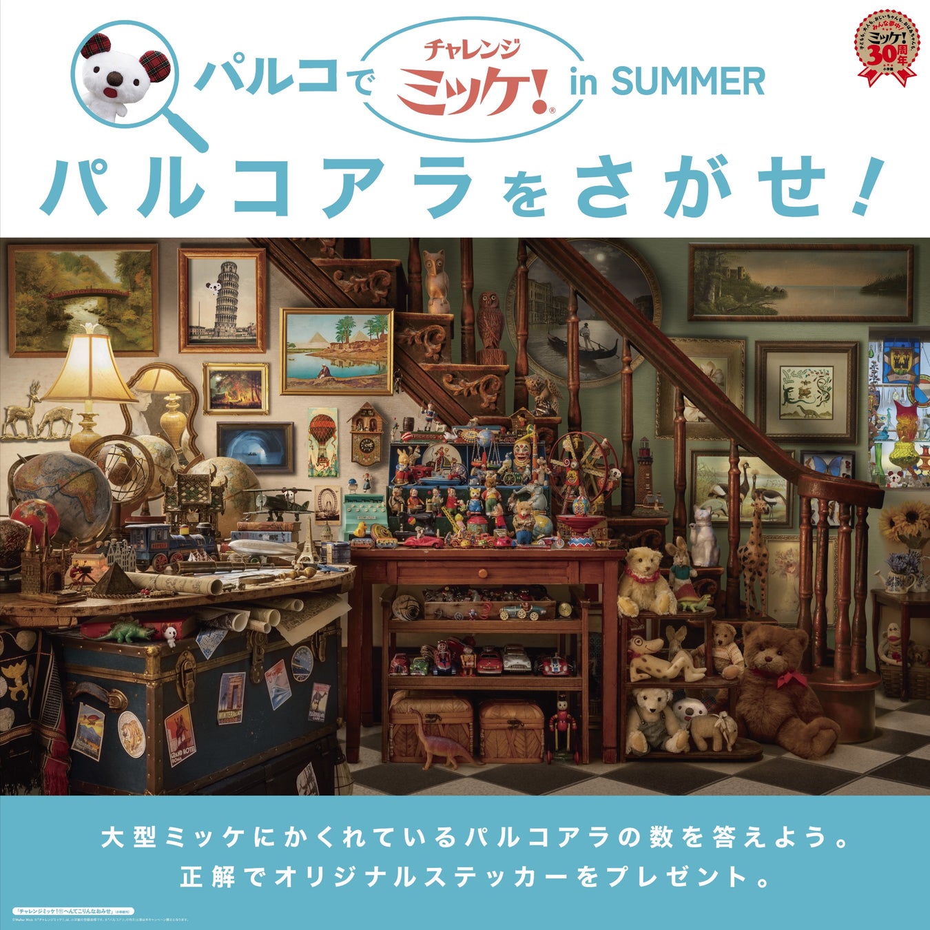 - 館内に約2m×2mの大型「チャレンジミッケ!」が登場!かくれているパルコアラを探してオリジナルステッカーをゲットしよう。