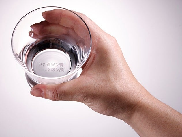 同社はさまざまな受賞歴を誇るグラスとマグカップのブランドで、その中でも画期的な製品が「生涯を添い遂げるグラス」です。万が一破損してしまったときは、本品と補償書を付属の外箱に入れて発送することで(送料は発送元負担)、なんと初回は無償、2回目以降は税込み2750円(エッチングの再刻印は税込み1650円追加)で新品と交換ができます。この生涯補償付きのロックグラスの底面に、作品タイトルにちなんだ劇場版のフレーズ「青く光るほど熱く吹く」をエッチング。