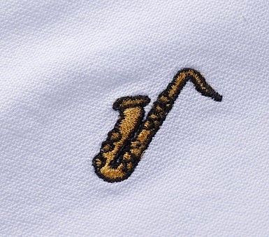 映画の公開日である2023年2月17日に憧れの舞台に立つ「JASS」の架空のライブフライヤーをイメージして大胆に刺繍しました。ブラックの生地にゴールドの糸で表現されたグラフィックは、高級感を感じさせながらレトロな雰囲気です。