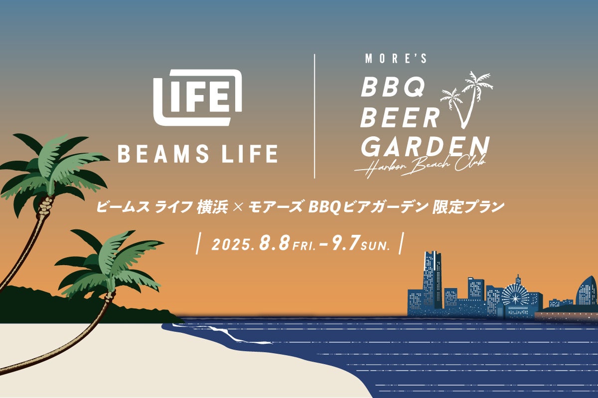 港町横浜で”Harbor Beach Club”をテーマに、サマーリゾートを味わえる「モアーズBBQビアガーデン」と、五感を刺激し、好奇心をみたす体験型セレクトショップとして新しいエンターテイメントを提案する「ビームス ライフ 横浜」とのコラボレーション企画が実現。