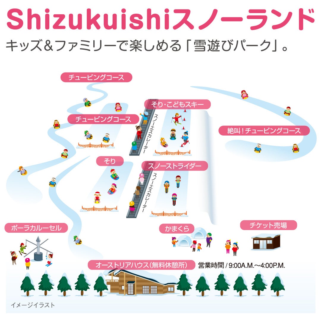 雫石スキー場は、1993 年アルペンスキー世界選手権盛岡・雫石大会の開催地となり、コースのバリエーションが豊富で初級者から上級者まで楽しめるスキー場として沢山のお客さまに支えられております。今シーズンは、初めてでも楽しめる、スノーストライダー滑走の体験が出来るパークエリアや、地形を活かしたバンクやロールなど3D感覚を身につける練習に最適なアトラクションアイテムを揃えます。また、小学生までのリフト料金が無料のほか、スキーをしない人も楽しめる雪遊びパーク「Shizukuishi スノーランド」などさまざまなアクティビティやイベントもご用意しております。