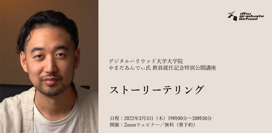 この度、DisneyのMarvel Studios で3D映画制作を行っている、やまだあんでぃ氏が教員に就任し、来年度より本大学院にて、新科目「ストーリーテリング」を担当されます。