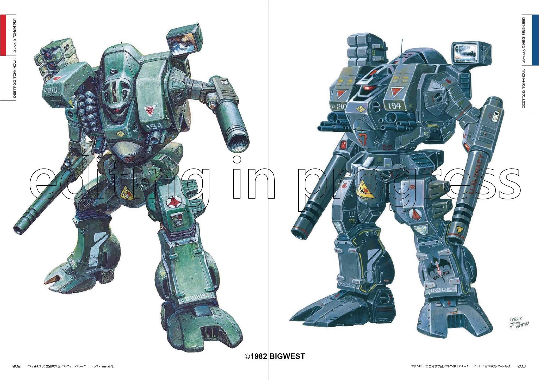 当時、ロボットアニメのプラモデルは、ほぼ設定資料に色をつけた状態といって差し支えないようなパッケージアートが用いられていました。しかしそんな中『超時空要塞マクロス』は番組スタート前に模型店に商品が店頭に並び、そのパッケージアートは新鮮で刺激的でした。それもそのはず。ミリタリー模型のリアルなパッケージアートを手掛け、パッケージアートの第一人者であった髙荷義之氏を大胆に起用。髙荷氏が描く鋼鉄兵器には確かな存在感があり、冷たい金属の質感や重量感まで十分に表現されていました。この作品の送り手は自分たちを大人扱いしてくれる……、と感じた少年(当時)たちは興奮しながらその模型を手に取ったものでした。バルキリーやデストロイド、リガードの陰影や、汚しの表現など、 パッケージアートならではの高荷義之氏の筆遣いがよみがえります。さらに、髙荷氏と併せてパッケージ画を数多く手がけたアートミック鈴木敏充氏の作品も収録。これまでまとまって紹介されることがなかった「マクロス」模型のパッケージアートをこの1冊に集約。