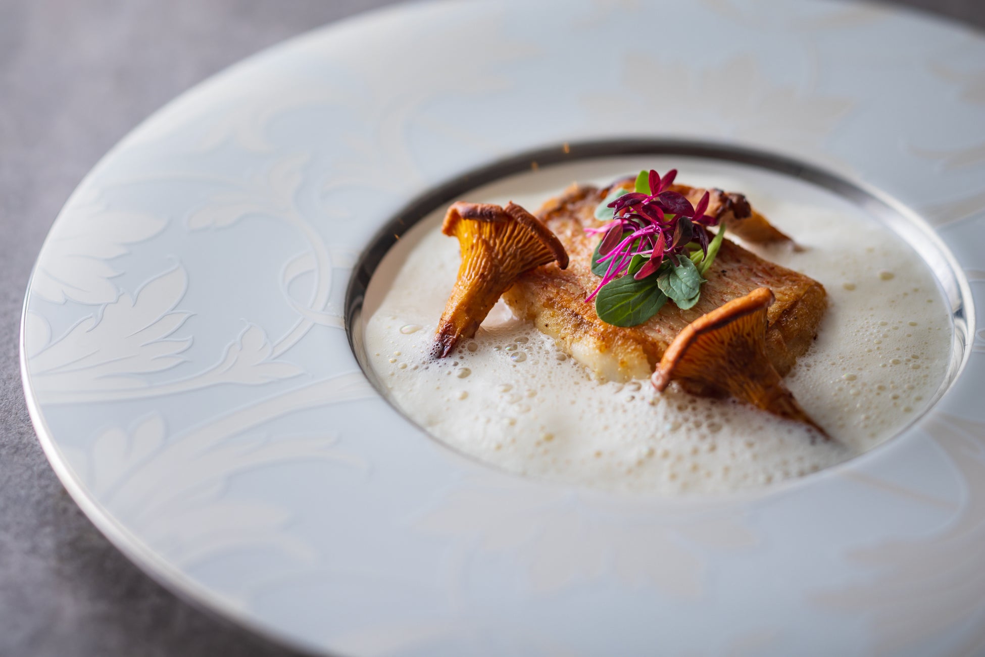 〇甘鯛のソテー 蕪のムースとジロール茸添え エミュルシオンソース