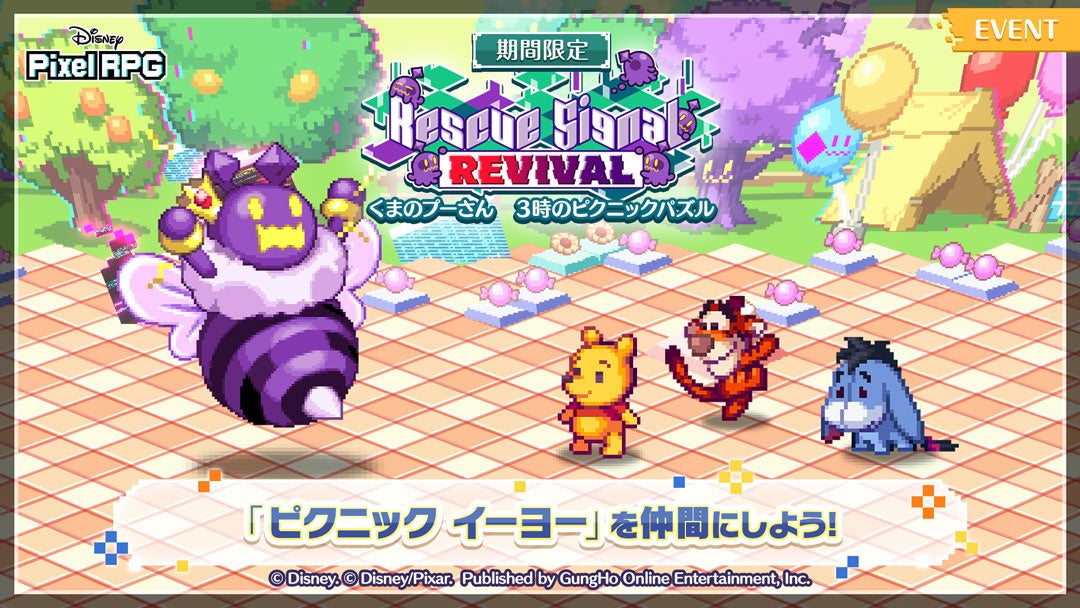 ポイント交換で「ピクニック イーヨー」を仲間にできる「Rescue Signal REVIVAL:くまのプーさん 3時のピクニックパズル」を開催いたします。