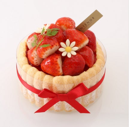 軽い食感のビスキュイの中に、苺のムースとホワイトチョコレートムースをとじこめ、国産旬苺をはなやかに飾りました。