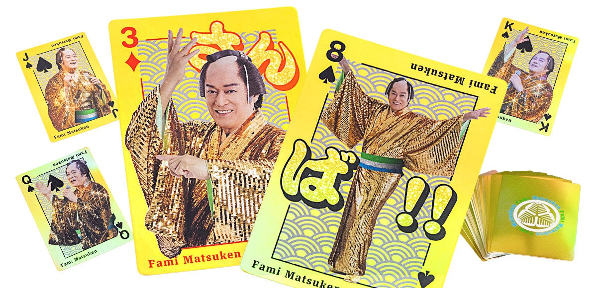 松平さんのおすすめグッズは、通常のトランプカードよりも一回り大きなサイズの「ファミマツケンでっかいトランプ」です。J~KやJOKER2種にはこだわった特別なデザインをご用意しています。さらに、マツケンデザインならではのお楽しみとして、「3」と「8」にも、並べると「さんば!」になる仕掛けを施すなど、手元で並べて楽しめる仕掛けもございます。抽選申込は11月24日(月)までとなりますのでお忘れなく。