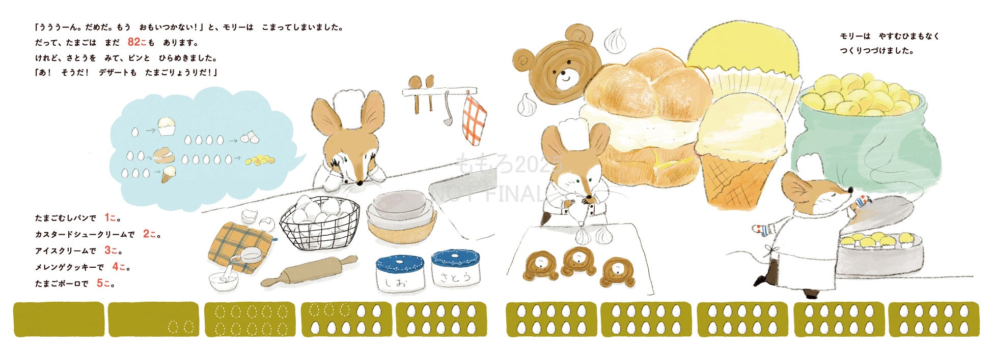 作中にある“たまごカウンター”で、数がイメージしやすい! お話を楽しみながら数字や計算に親しむ、美味しそうなさんすう絵本です。