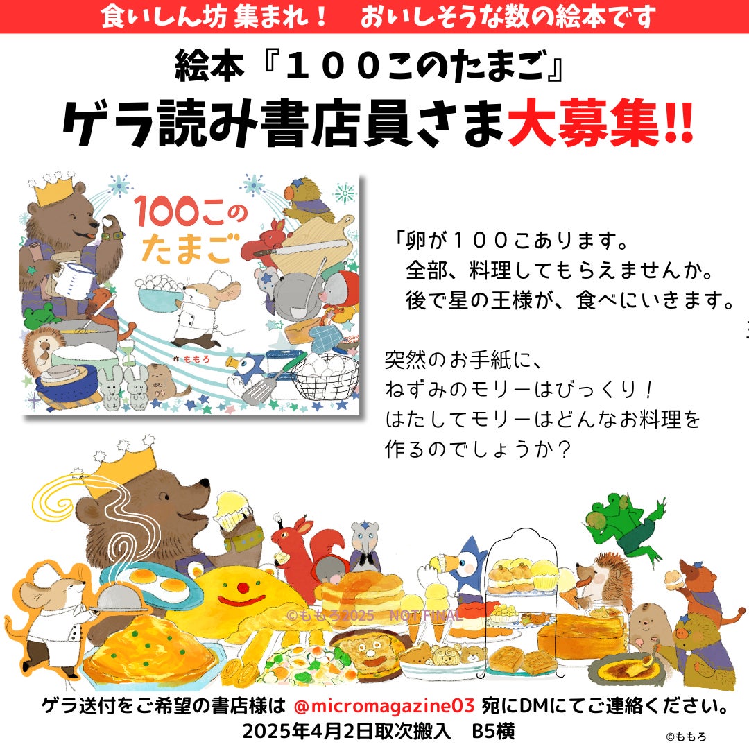 マイクロマガジン社(東京都中央区)は、2025年4月刊行予定の新作絵本『100このたまご』のゲラ(校了前の原稿)を読んでくださる書店員さまを募集いたします。