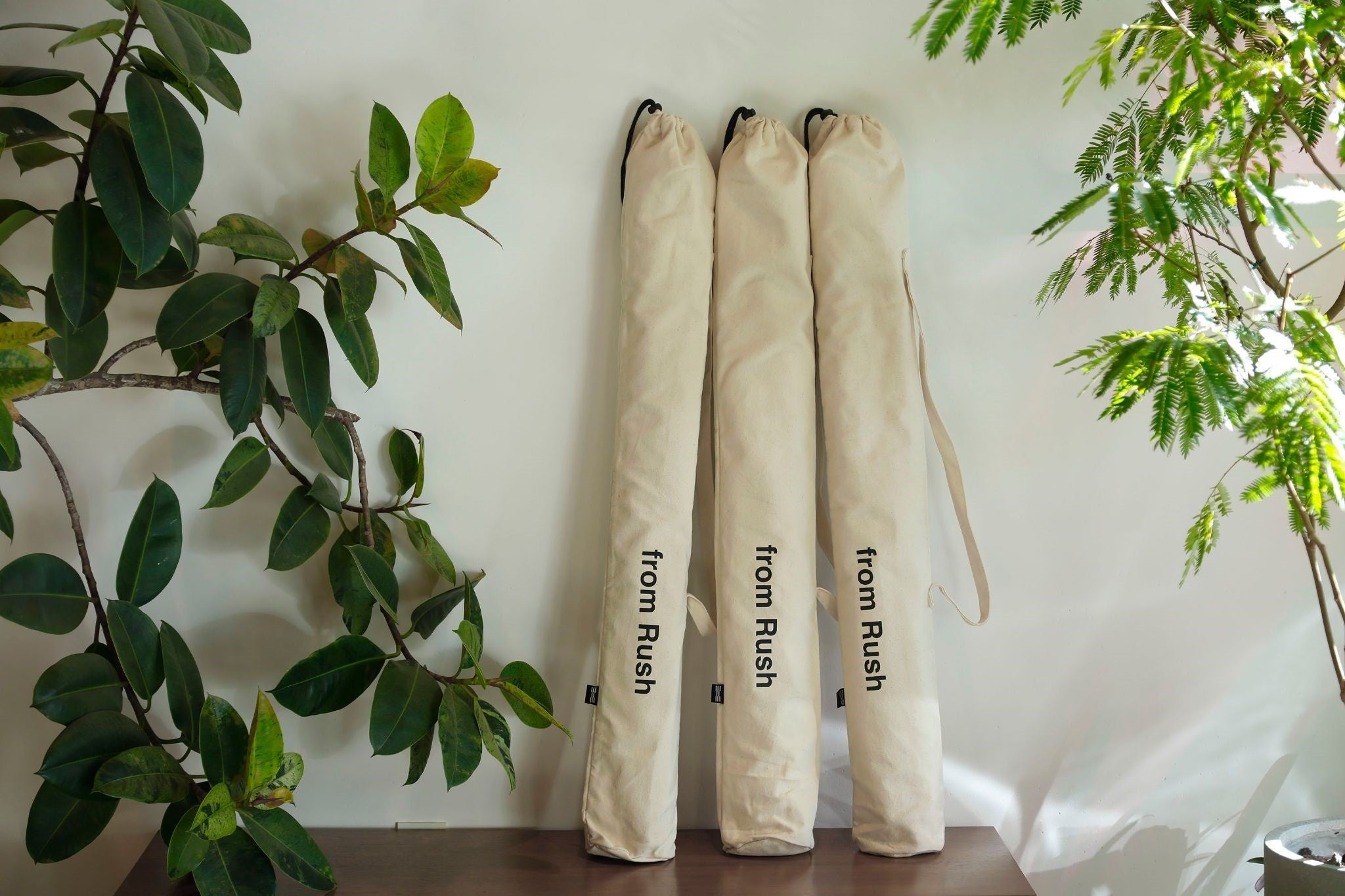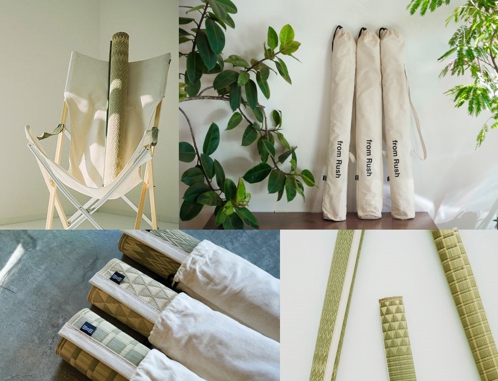 日本で古くから愛用されてきた「い草」に注目し、国内い草を使ったモダンなデザインのラグマットを展開する熊本県熊本市発のブランド<from Rush / フロムラッシュ>。昔から九州に伝わる伝統柄をモチーフにアレンジされたロール状のい草マットは、畳一畳分の使いやすいサイズで、縁には帆布が施されています。日本の文化であり、暮らしの知恵が詰まったい草を、現代の暮らし方に馴染むようにアレンジしたプロダクトが魅力です。