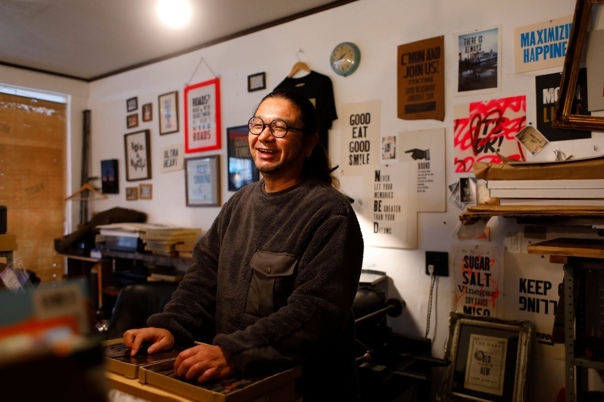 熊本県天草で活版印刷所を営む<九州活版印刷所>からは、「笑う門には福来る」の言葉を英語で表現した活版印刷を額装した商品を展開します。天草は活版印刷との縁がある土地だと<九州活版印刷所>代表の長島裕介さん。かつて、ヨーロッパを旅した天正少年使節が日本へ持ち帰り、1591年に長崎の加津佐から熊本県天草へと活版印刷が伝わりました。めずらしいしめ縄のモチーフも天草に古くから残る文化からインスパイアされたもの。おめでたいシーンでの贈り物にも相応しいモチーフで、ギフトとしても人気の高いデザインです。