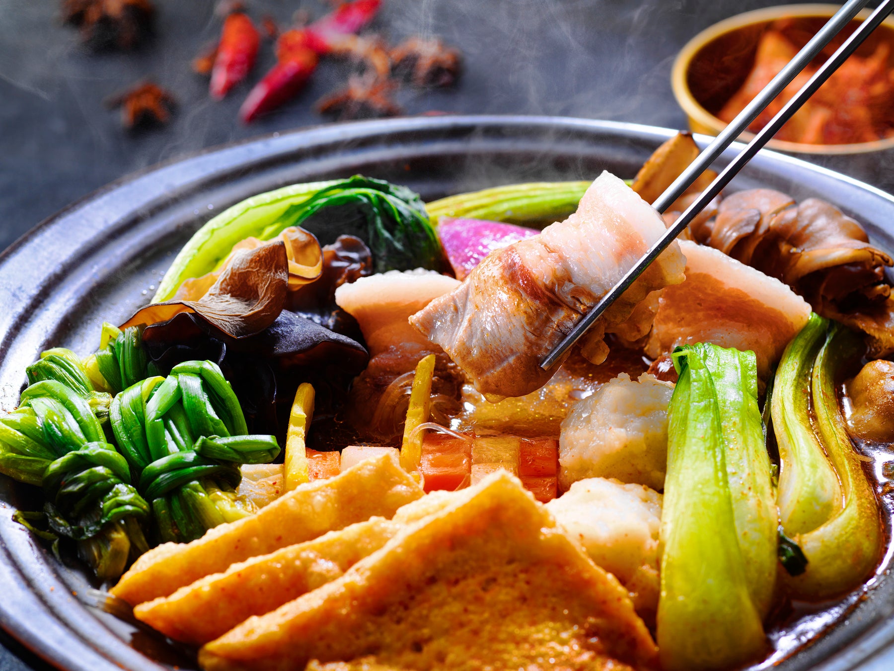 鶏ガラスープをベースに、花椒と唐辛子で仕上げた本格的な『麻辣味』火鍋です。花椒のしびれる辛さと唐辛子の刺激が体を芯から温めます。たっぷりの野菜やルスツ高原豚など、お好みの具材とともにお楽しみください。