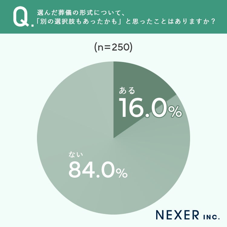 ■16%が、葬儀の形式に別の選択肢もあったかもと思ったことが「ある」と回答