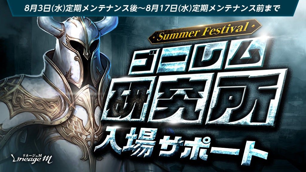 PCオンラインRPG「リネージュ」のモバイル版タイトル『Lineage M(以下、リネージュM)』のサービス、運営をしているエヌ・シー・ジャパン株式会社(東京都港区、代表取締役:金 澤憲(キム テクホン) 以下、エヌシージャパン)は、2022年8月3日(水)に、最新アップデート「Summer Festival in ADEN」第三弾として「全サーバー闘争!これがアデンの盆踊り」、「Re:スキルブック交換」、「ゴーレム研究所入場サポート」の開催、「試練の塔低層リニューアル」の実施、新たなパッケージの登場、及び期間限定製作2週目の開催をお知らせします。