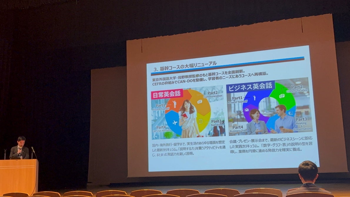 ●基幹コースである「日常英会話」および「ビジネス英会話」のリニューアルについて、CEFR(※1)に基づき最適化された学習カリキュラムの構造や、その具体的な開発プロセスを解説