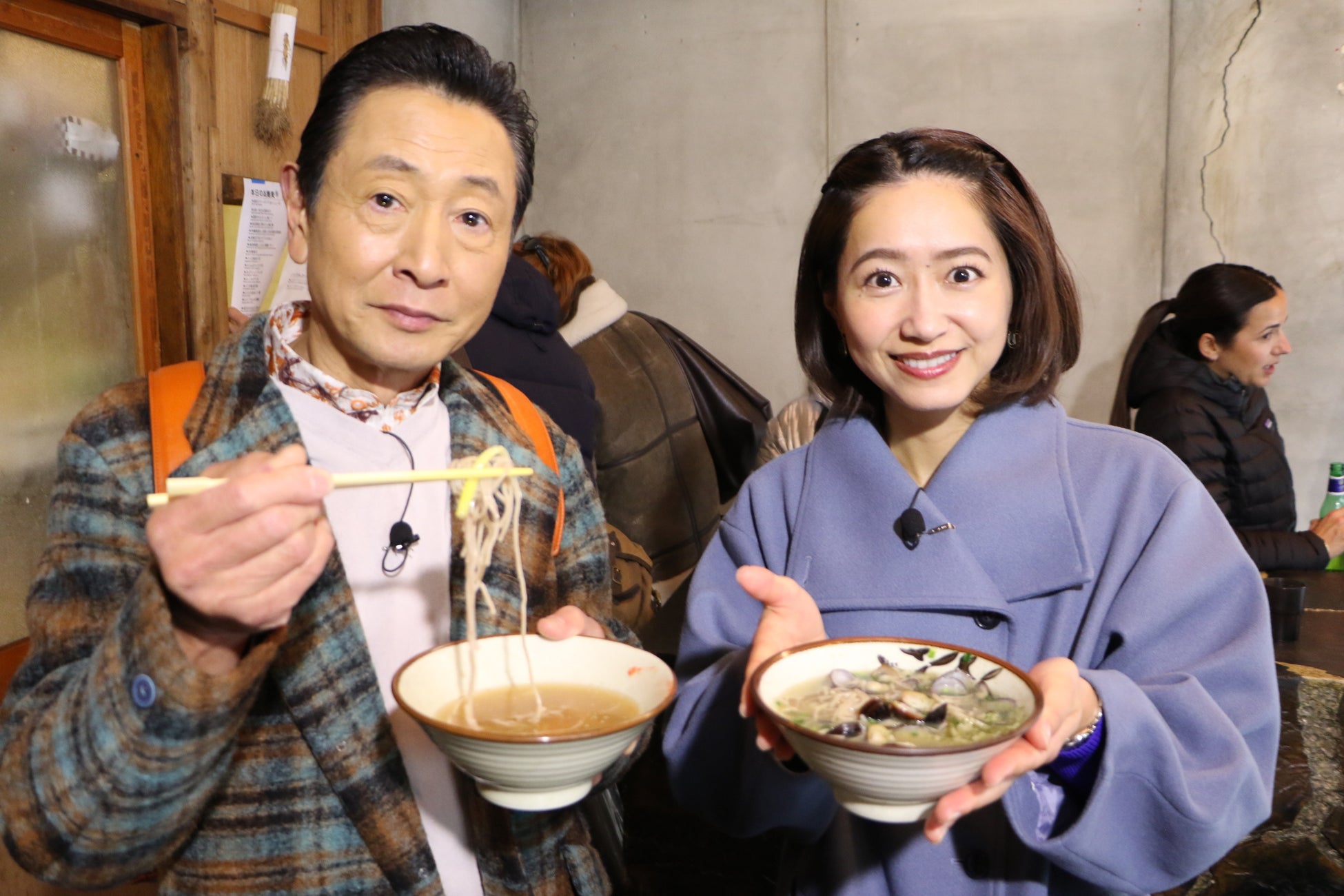 出汁の出どころが気になった三田村。【SUMI】のお隣にある蕎麦屋【suba】に向かうことに。『島根県産しじみと発酵バターのそば』と『国産牛ホルモンと黄ニラのそば』をいただきます。斬新なアレンジおそばと日本酒がベストマッチ!