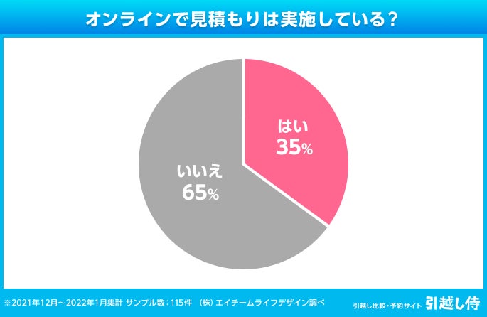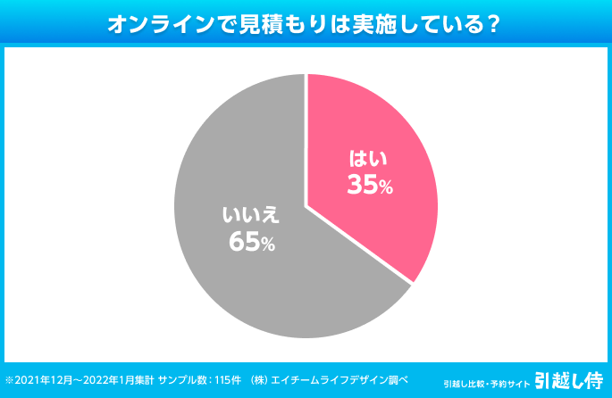 非対面需要が高まる中でも、オンラインで引越し見積もりを実施している引越し会社は35%に留まった。しかし、そのうち90%がコロナ収束後もオンライン見積もりを継続すると回答した。