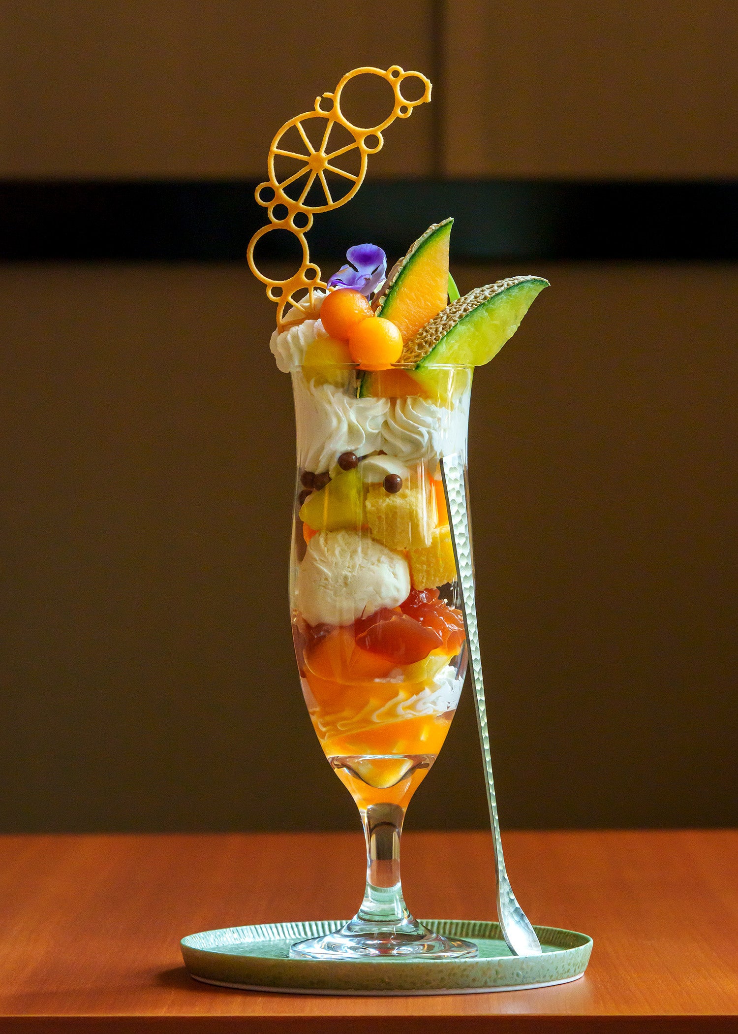 その他、「ラウンジ&バー ハカタガワ」では、10年以上の歳月をかけて誕生したオリジナル品種『イバラキング』を使用したメロンのカクテルをご提供。『イバラキングメロン マティーニ』は、濃厚なメロンの味わいをシンプルなスタイルのカクテルが引き立てる1杯です。一方、パフェ「メロン・リュクス」は、茨城県産のメロンを使用し、上品な甘さと、きめ細かくみずみずしい果肉を味わえる、初夏らしいスイーツです。