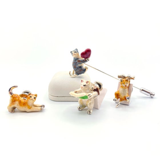 左. 猫ネックレス 13,200円 中. 猫ブローチ 14,300円 右. 猫ネックレス 16,500円