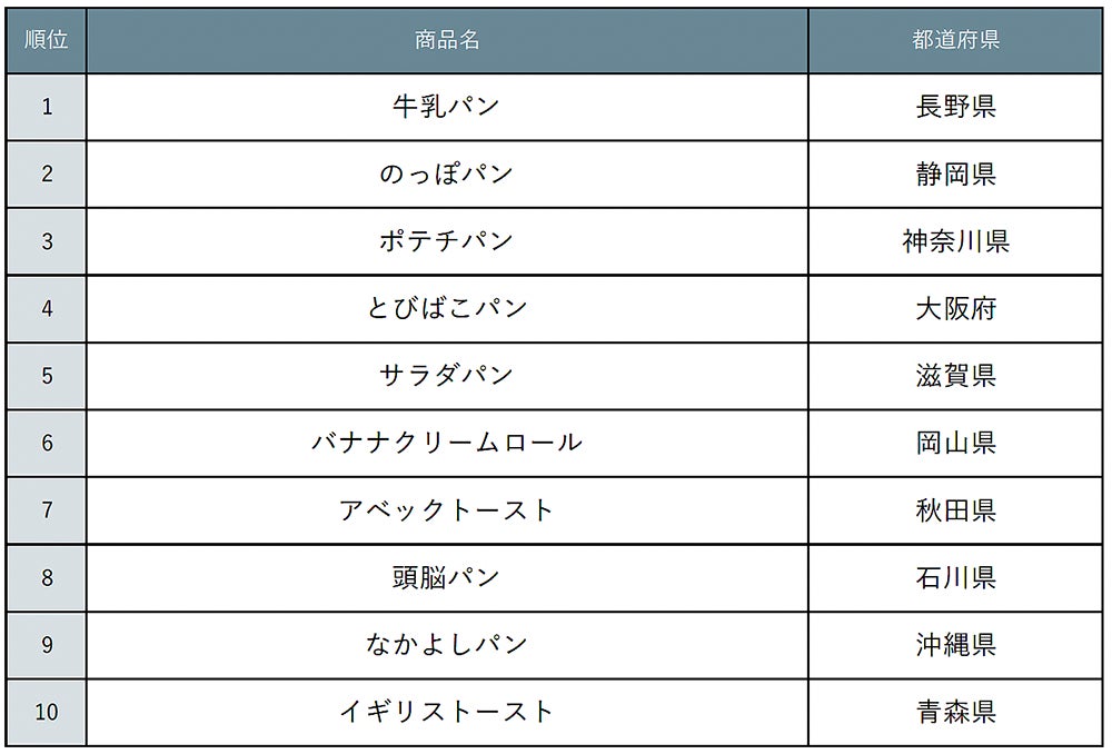 日本全国その地域ごとに絶大な人気を誇るご当地パンがたくさんあります。今回は「青春を思い起こさせるご当地パン」をテーマにアンケートを実施しました。その結果、青春の味ご当地パン1位に輝いたのは長野県「牛乳パン」。ふわふわの生地にミルククリームがたっぷりサンドされてボリューム満点!地元でも長く愛されているご当地パンです。続く2位は静岡県「のっぽパン」。34cmという細長さとキリンのイラストが印象的なロングセラー商品。そのほか、ランクインしたご当地パンはいずれも、地元民に長年愛され続けている商品ばかり。「学生時代によく食べた」と懐かしく思い出すものもあったのではないでしょうか。