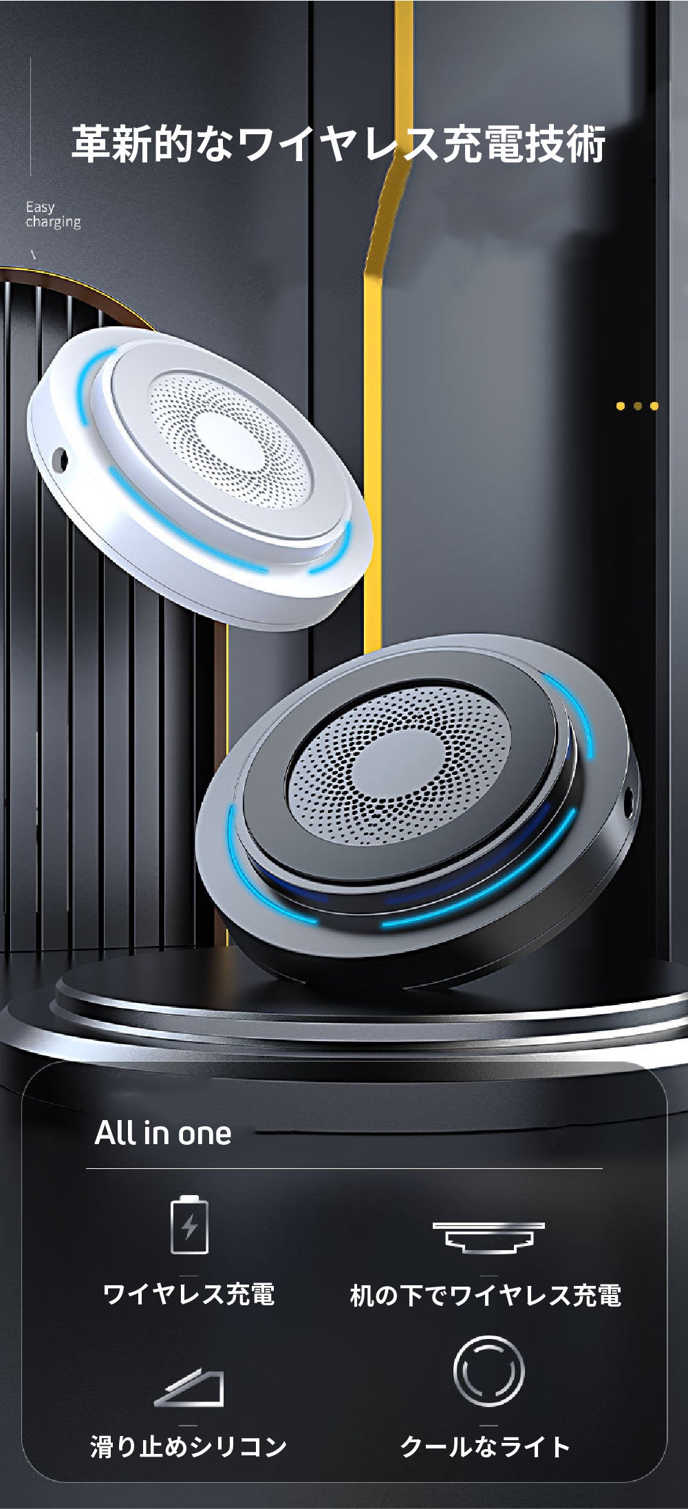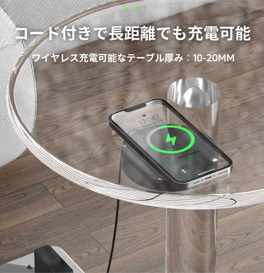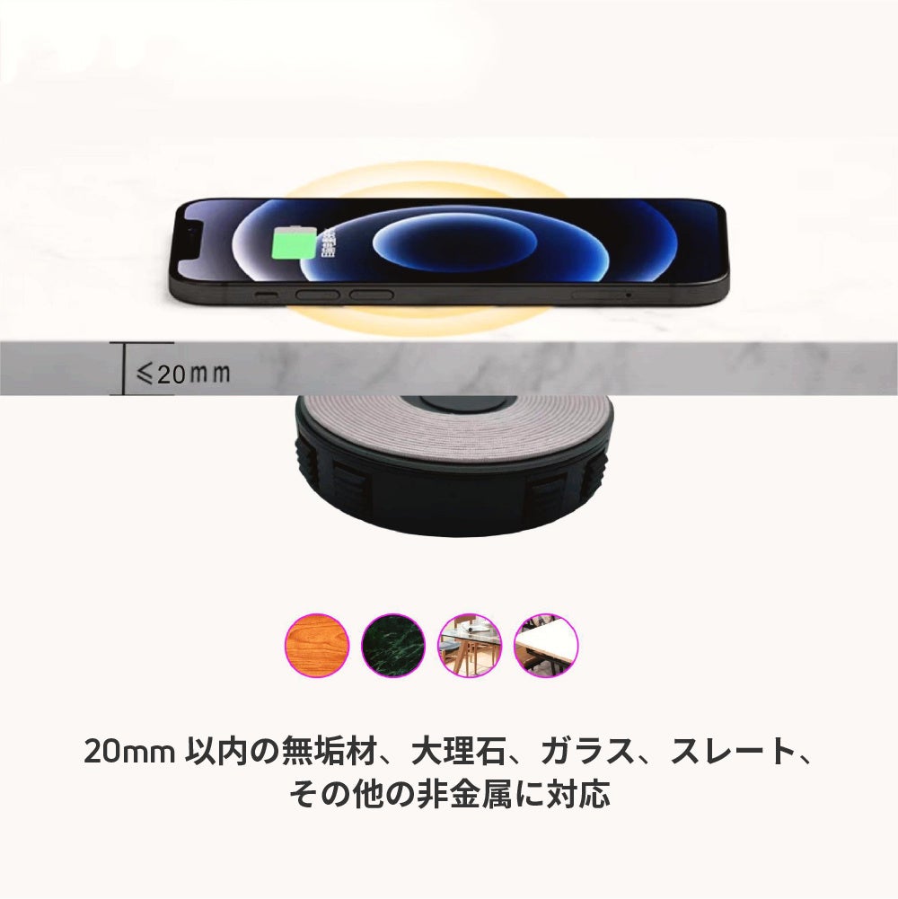 テーブル裏に完全に隠し込めるため、お部屋のインテリアを損なわない画期的なワイヤレス充電器が登場しました。