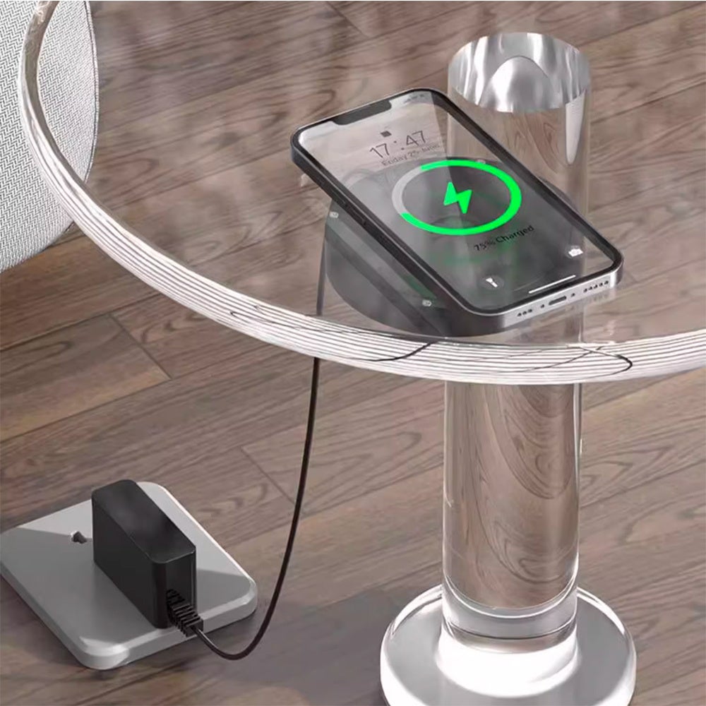 テーブル上の一見何もないところでワイヤレス充電を開始する様子は魔法のようです!