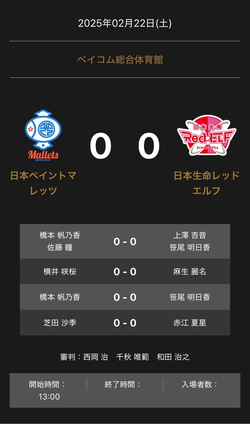 ノジマTリーグ 2024-2025シーズン 公式戦 2月22日開催 日本ペイントマレッツ vs 日本生命レッドエルフ 対戦オーダー発表