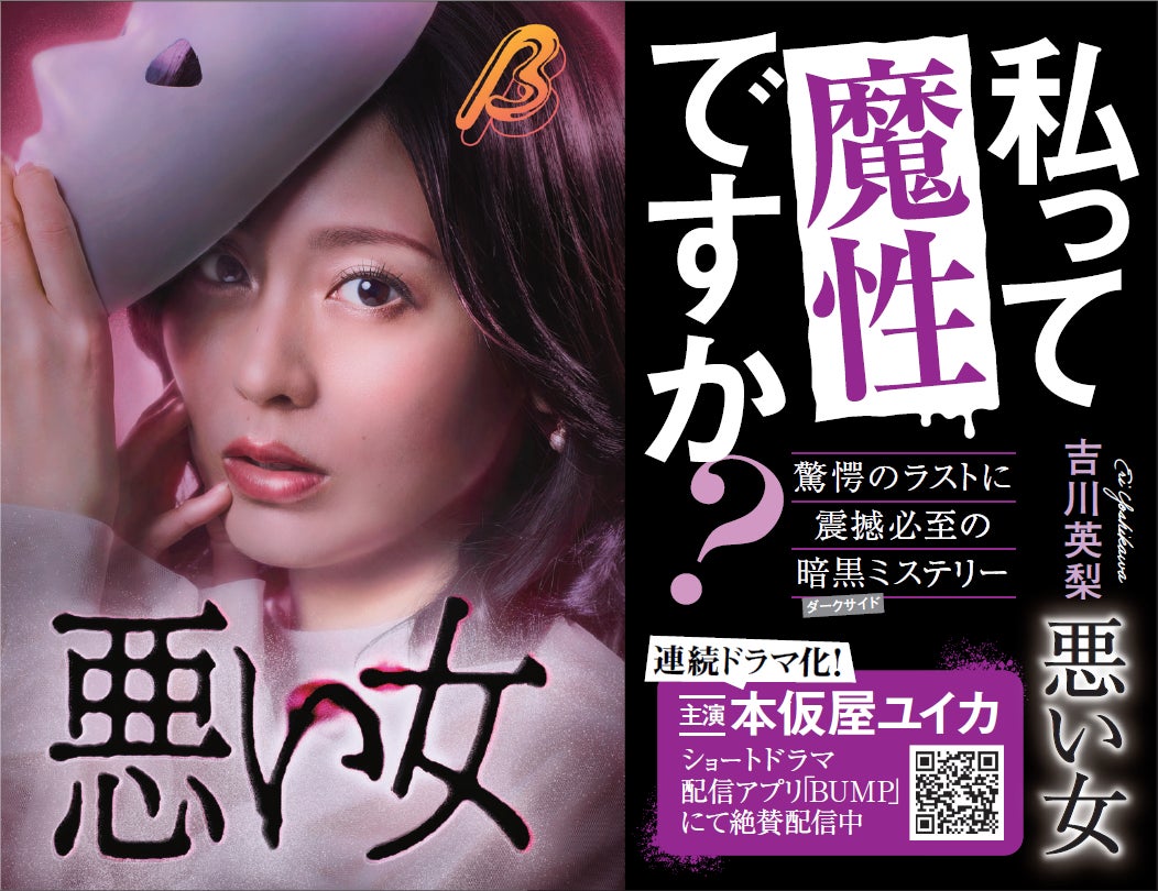 吉川英梨さんの傑作ミステリー小説『悪い女 藤堂玲花、仮面の日々』(朝日文庫)が実写ドラマ化されることになりました。本仮屋ユイカさんを主演に迎え、2024年11月27日(水)12時よりショートドラマアプリ「BUMP」で配信スタート。本作は朝日新聞社と「BUMP」を開発・提供するemole株式会社が共同製作した、ショートドラマプロジェクトの第1弾となります。
