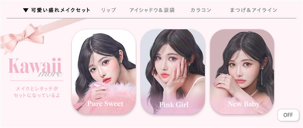 『VERUA』の写りは、絶妙なバランスでつくる「儚い美少女盛れ」が特徴です。マットでふんわりとした質感の写りで洗練された雰囲気を作り出し、潤いを感じさせる目元の写りや繊細なメイク加工で可愛らしさをプラス。これまでとは一味違う“大人可愛い”盛れ感に仕上げました。メイクパレットには「大人盛れメイク」「可愛い盛れメイク」が登場し、リップ・アイシャドウ・まつげなどのメイクを自分好みに調整いただけます。2つのメイクパレットは組み合わせて使うことも可能です。