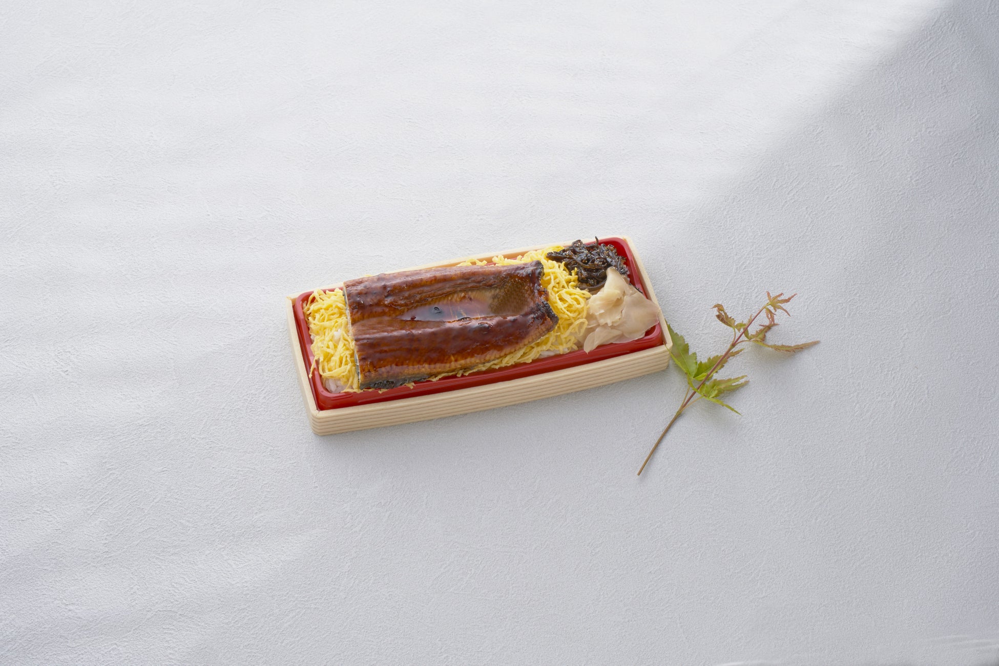 たっぷりの錦糸卵の上に鹿児島産のうなぎが乗ったお弁当。