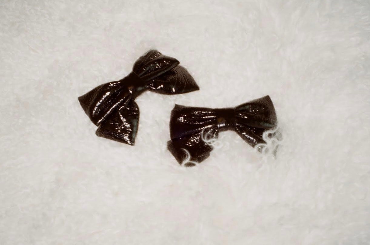 【限定】<theVirgins>tiny ribbon barette leather (ブラック) 4,950円