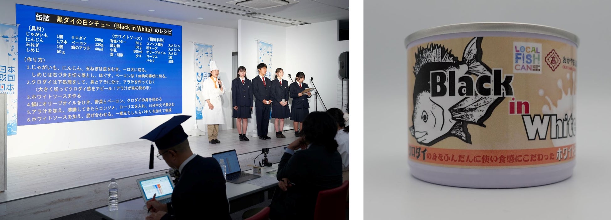 本年は、全国の高校生から57チームの応募があり、二次審査までを通過した9チームによる決勝大会を10月8日(日)に行い、ブリ(中落ちと中骨を含む)を課題魚とした缶詰を開発した愛媛県立長浜高等学校が優勝しました。