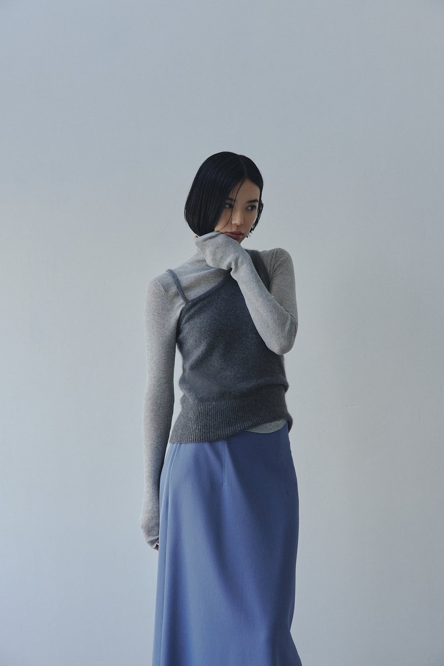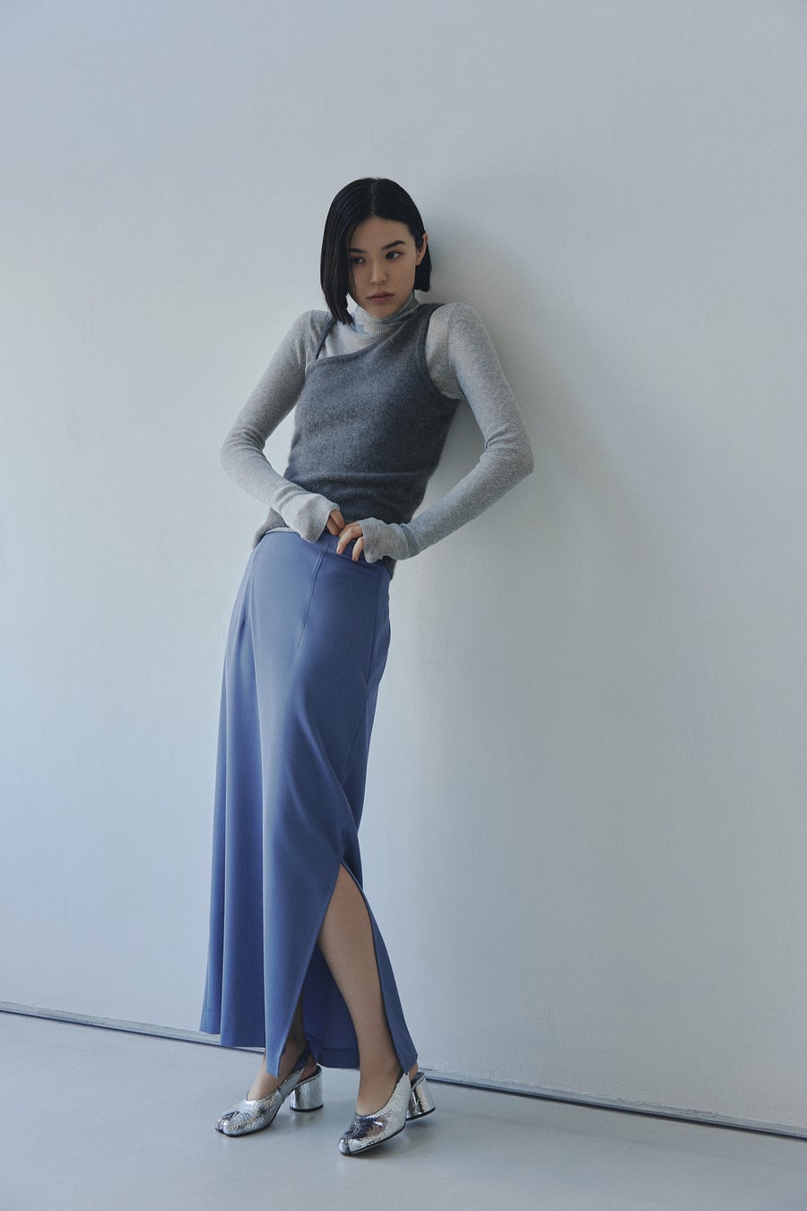 Knit tops ¥12,100 / Inner tops ¥12,100 /Skirt ¥17,600 / BLU