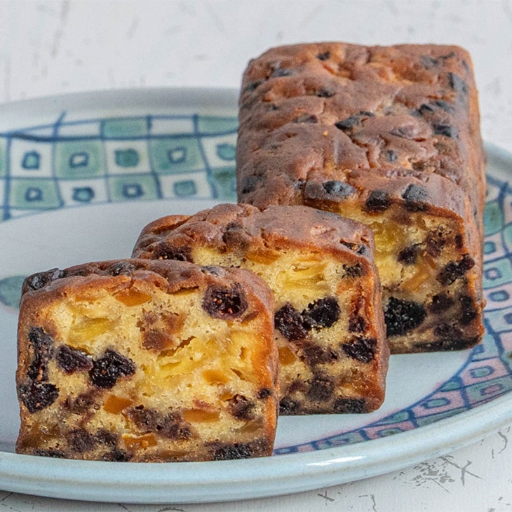 パイン、クランベリー、マンゴー、バナナをたっぷり使用した、夏季限定のドライフルーツケーキです。
