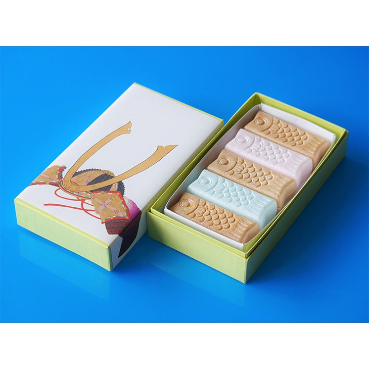 端午の節句に大空を飾る「鯉のぼり」を清流 浅野川に華やかに舞い泳がせる、恒例行事「鯉ながし」を三色のもなかに仕立てました。