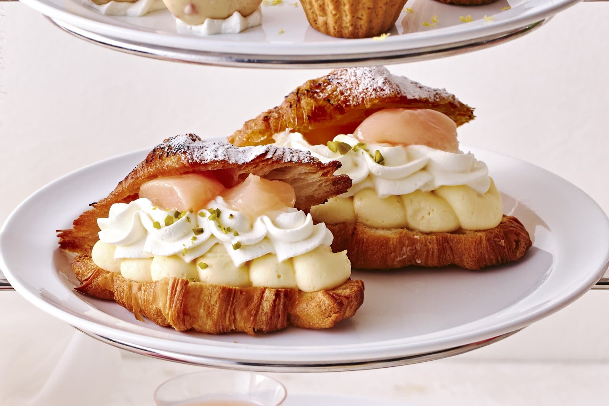 中段は白桃とカスタードクリームをたっぷり贅沢にサンドした「クロワッサンブリュレサンド」をご用意しました。