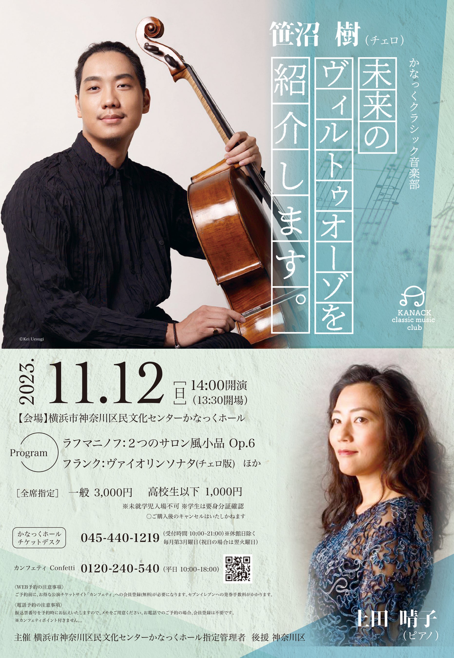 若手実力派チェロ奏者 笹沼樹が登場 『未来のヴィルトゥオーゾを紹介します』かなっくホールにて開催決定 カンフェティでチケット発売