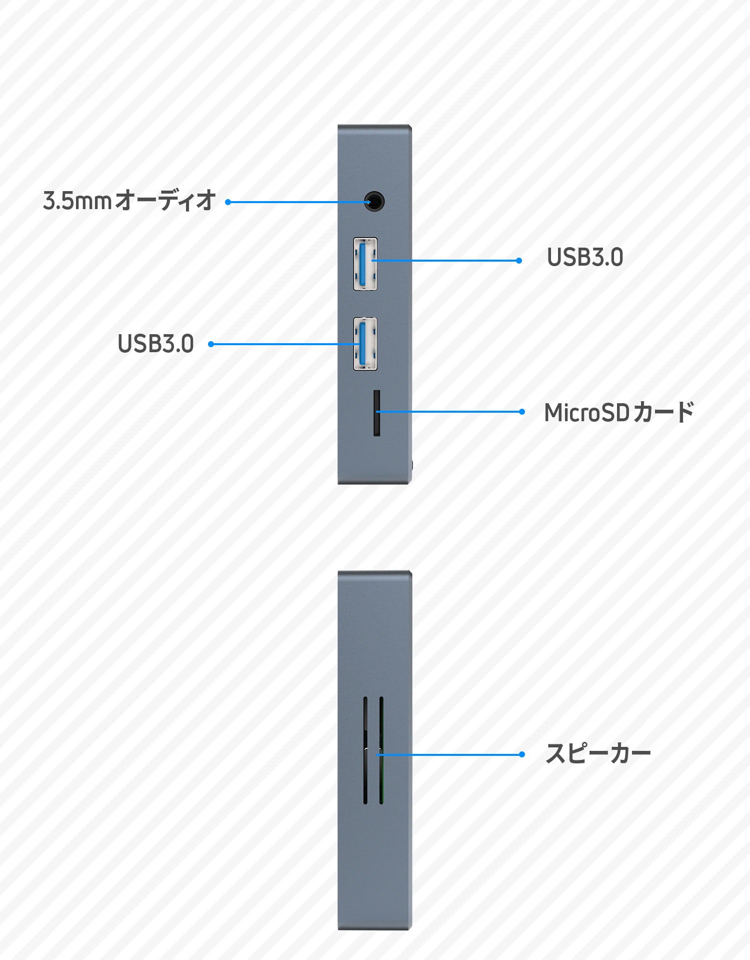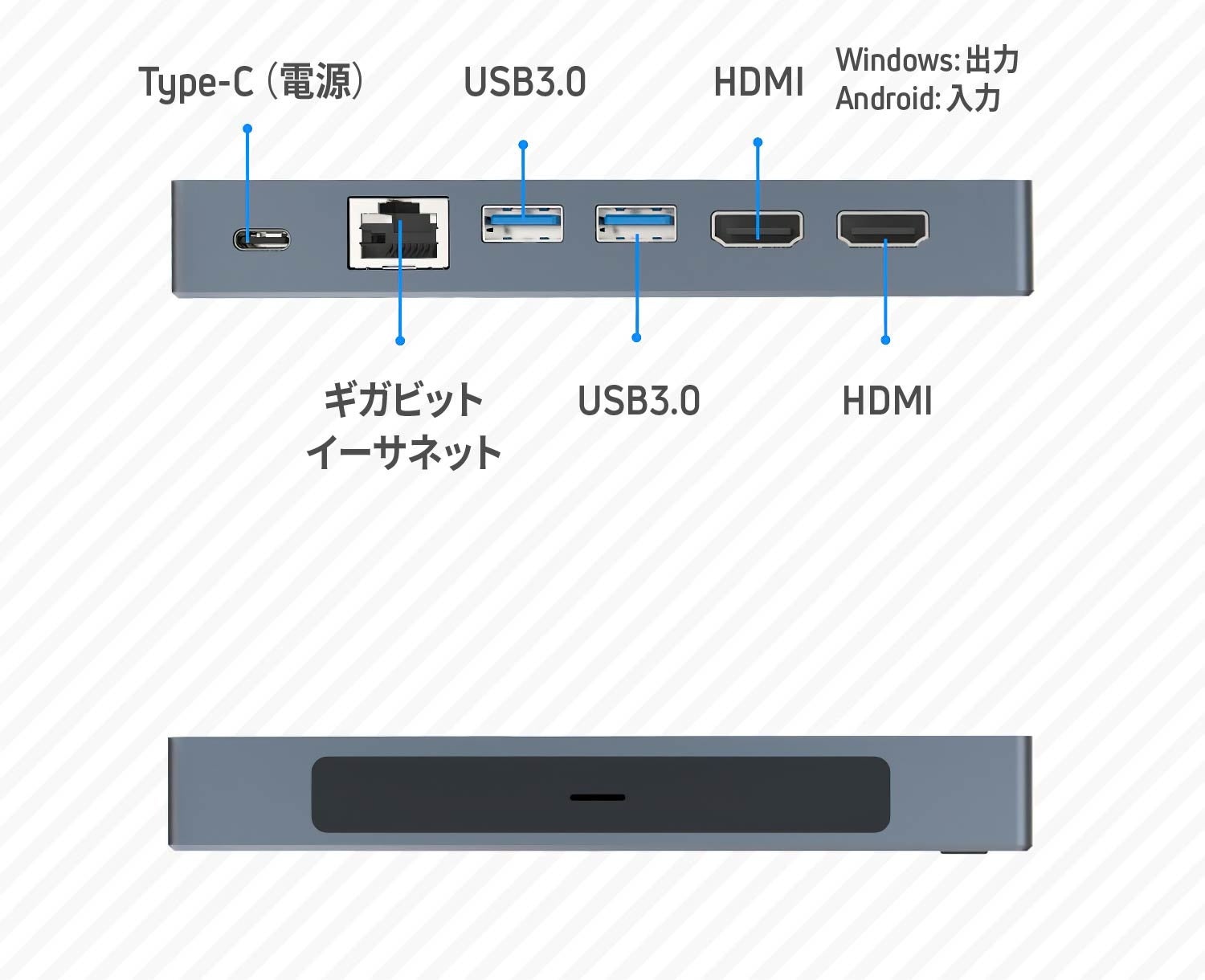 NanoPCは、4K 60Hz出力をサポートするHDMIを2系統搭載し、本体と別売のモニター2台と合わせて、トリプル画面での作業を可能にします。これにより、作業効率の大幅な向上が期待できます。