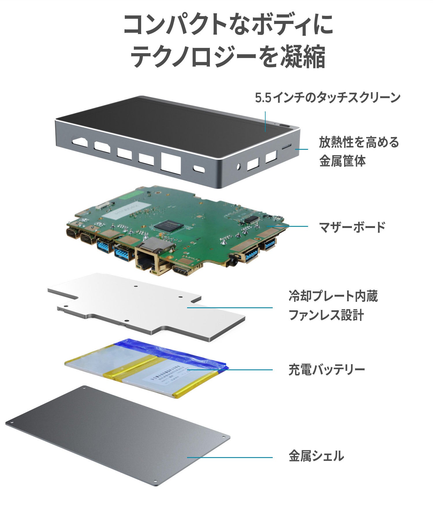 Windows搭載のミニ PCに5.5インチのタッチスクリーンが合体!