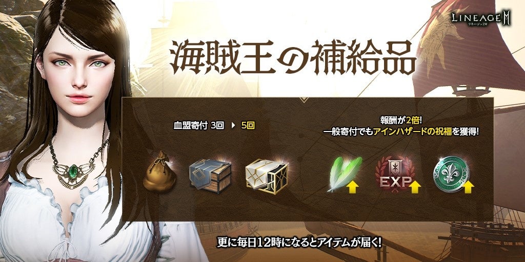 ほかにも、毎日21時にゲーム内郵便にて「海賊王の羅針盤(イベント)」や「アインハザードの祝福」1,500などのアイテムをお送りします。