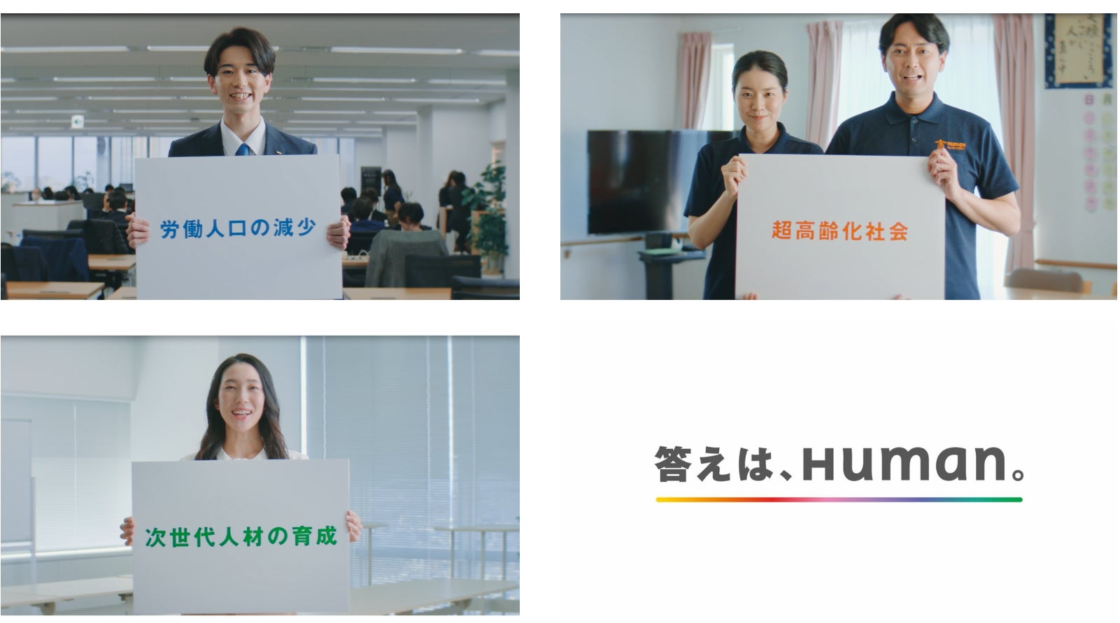 教育を中心に人材・介護・保育・IT・美容・スポーツ事業を傘下に持つヒューマンホールディングス株式会社(本社:東京都新宿区、代表取締役社長:佐藤朋也、以下「当社」)は、2026年4月25日(土)より、テレビCM「答えは、Human~歌のリレー」篇の放送を開始いたします。人手不足や働き方の多様化が進む中、“人の可能性”をどう引き出すかが社会的なテーマとなっています。当社はこの課題に対し、「答えは、Human。」というメッセージのもと、企業CMを通じてその価値を発信しています。本CMは、昨年の放映時に多くの反響をいただいたことから、本年はより多くの方にメッセージをお届けするため、放送エリアをさらに拡大して放映いたします。
